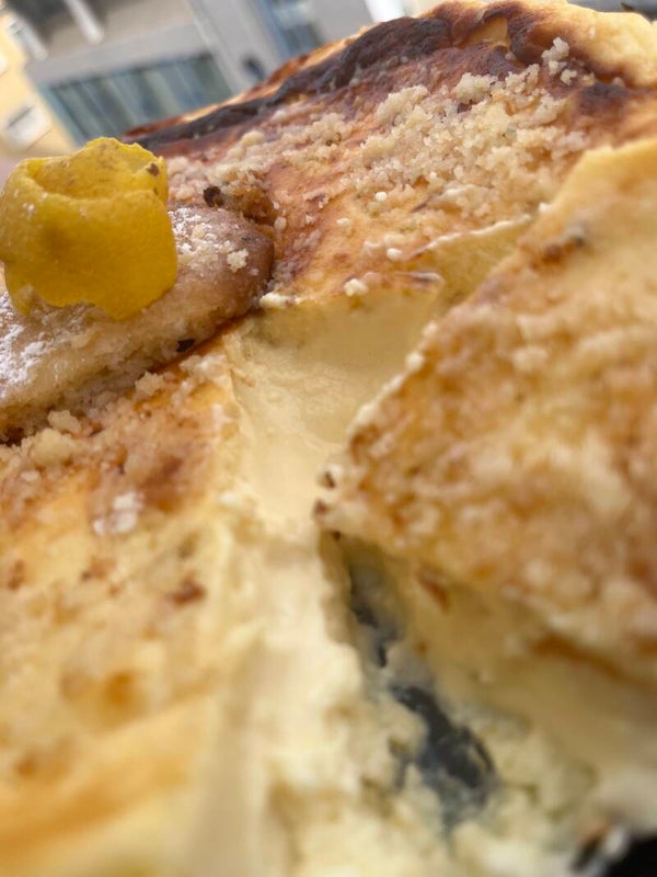 Una base crujiente de galleta artesana, untada con mantequilla fresca que se deshace al primer bocado. Sobre ella, una crema sedosa de queso cremoso, huevos camperos, azúcar de caña y el alma cítrica del limón de la huerta Murciana: ralladura fina y jugo recién exprimido que aporta un frescor punzante y natural, sin artificios. Batida a mano con paciencia hasta alcanzar esa textura ligera y untuosa, horneada lentamente para que el corazón quede jugoso y el borde se dore con un sutil caramelo. Cada porción explota en boca con el equilibrio perfecto entre la dulzura láctea y el toque ácido del limón murciano, un postre que huele a campo, sabe a tradición y se come con los ojos cerrados. ¡100% casera, 100% irresistible!